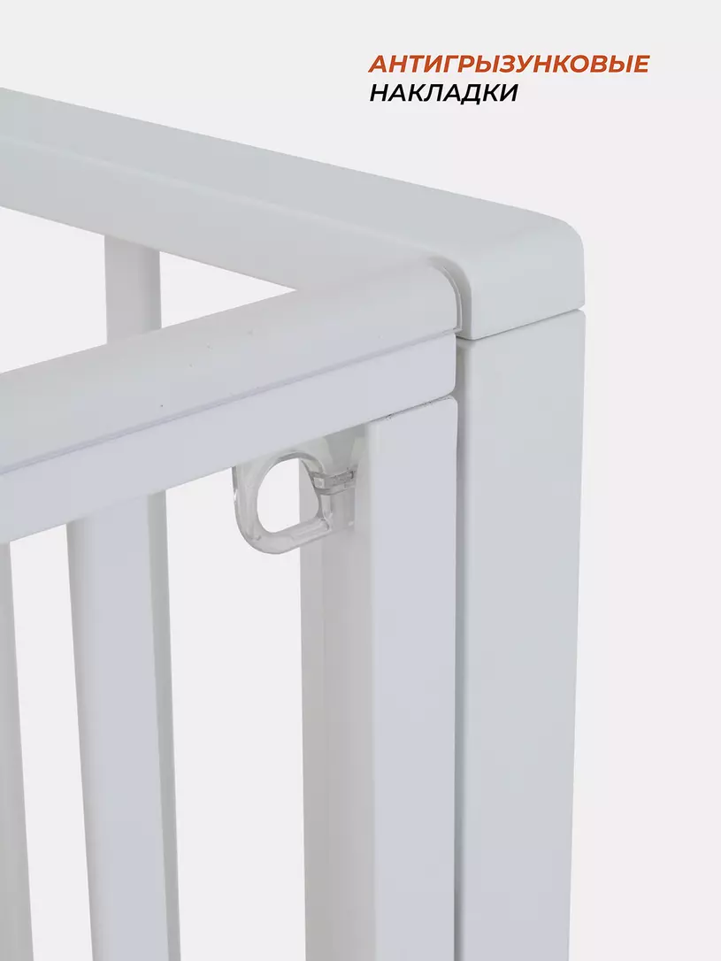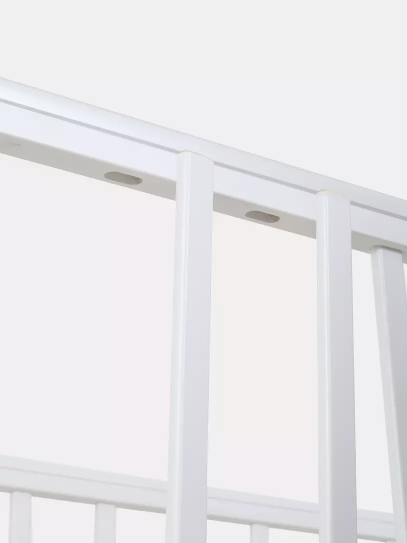 - верхние планки боковых стенок дополнены силиконовыми накладками, чтобы малыш не повредил десны (во время прорезывания зубов) и поверхность кроватки