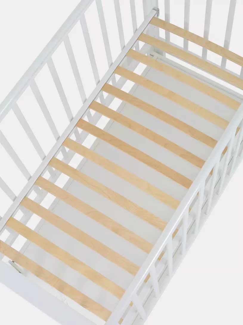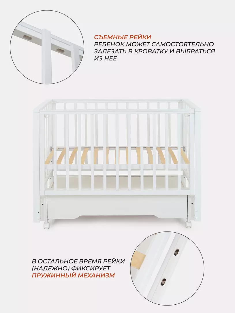 - чтобы подросший ребенок мог самостоятельно залезть в кроватку и выбраться из нее, из боковой стенки можно вынуть две рейки