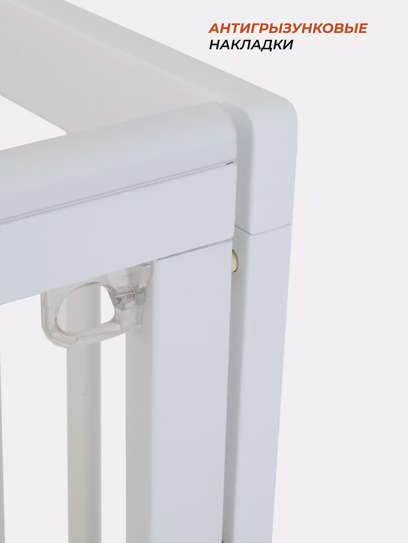- верхние планки дополнены силиконовыми накладками, чтобы ребенок не повредил нежные десны и поверхность кроватки