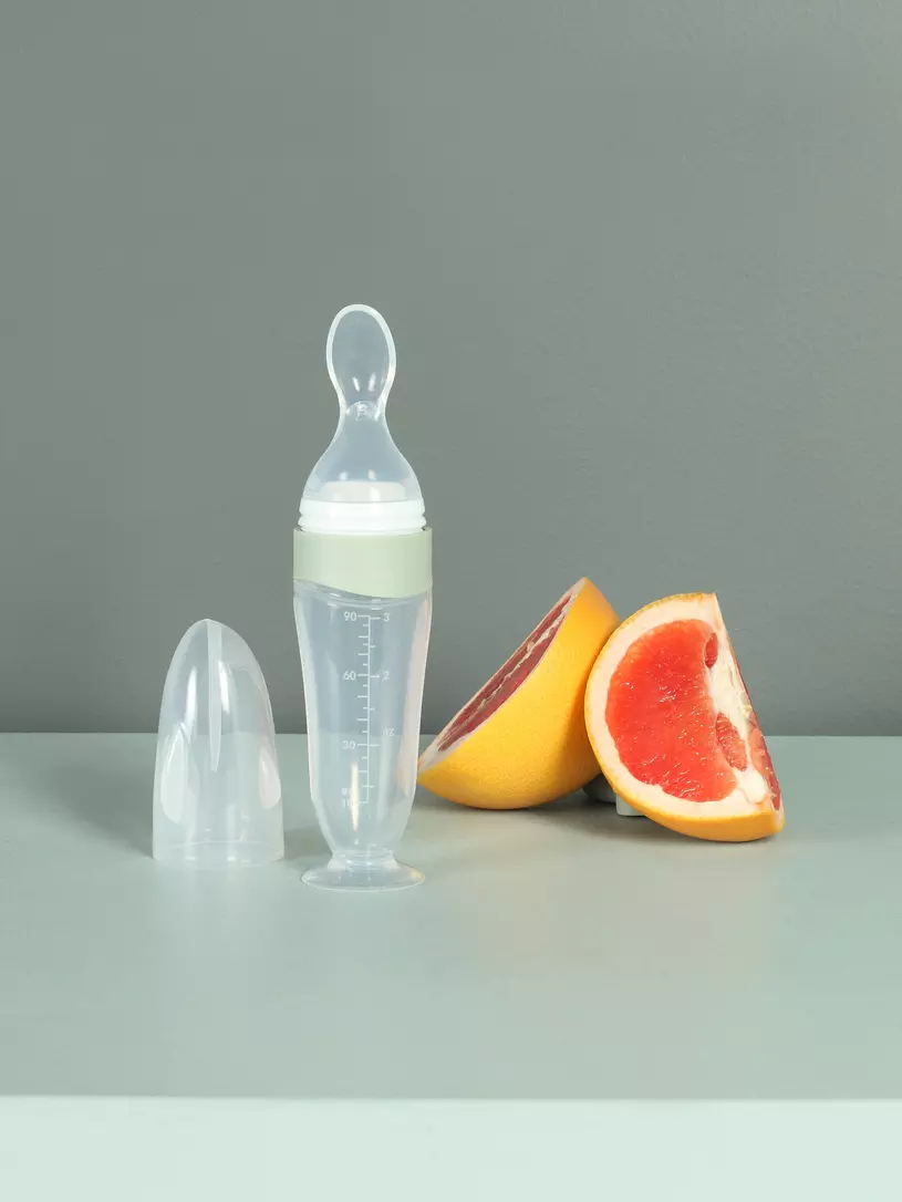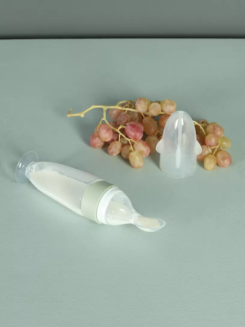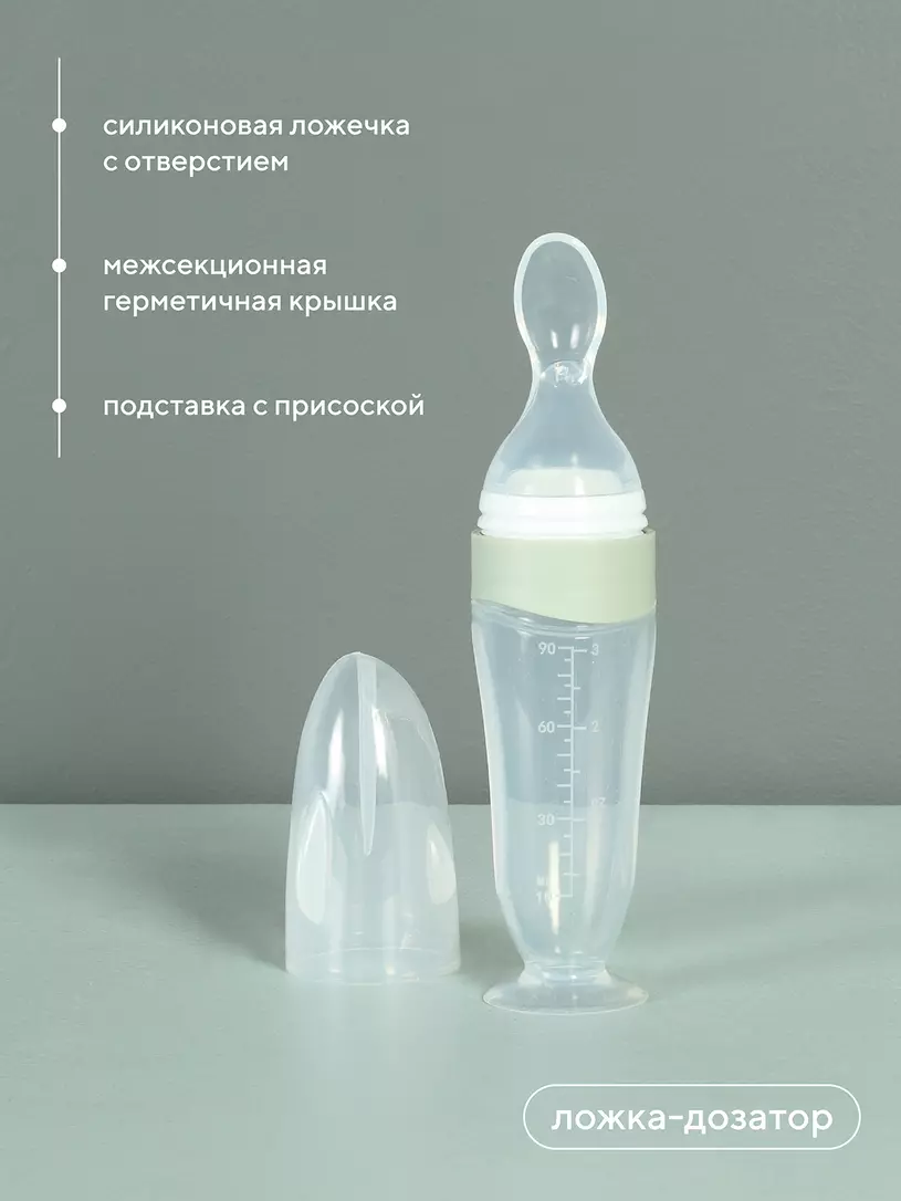 - ложка-дозатор, выполненная из мягкого пищевого силикона, не травмирует нежные десны, а оптимальный объем наконечника отлично подойдет для первого знакомства с едой