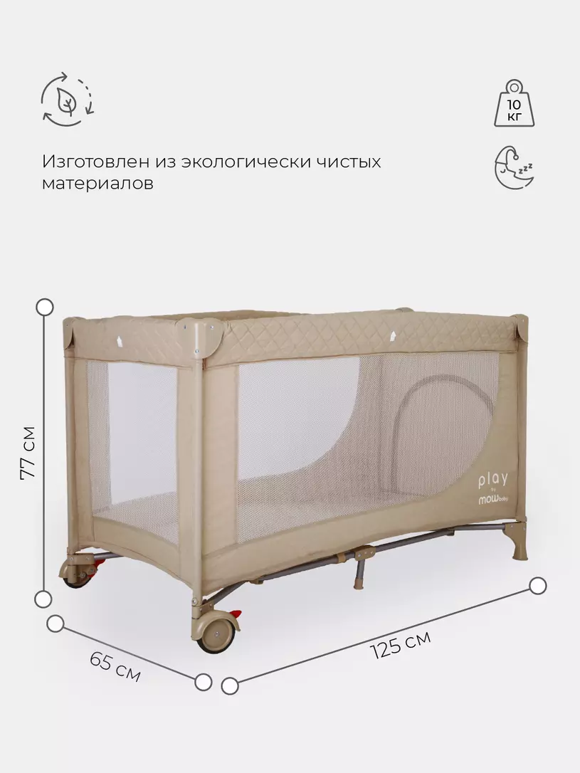 - это не просто манежик, но и полноценная кроватка для крохи. Поэтому смело используйте эту модель как дома, так и в любых поездках. Размер - 125x65x77