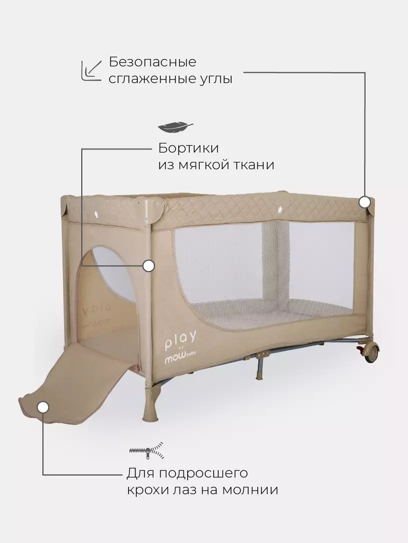 Функциональный детский манеж-кровать Mowbaby Play покорит вас: максимальной мобильностью, лазом на молнии для подросших малышей, компактностью в сложенном виде, удобной сумкой-чехлом.