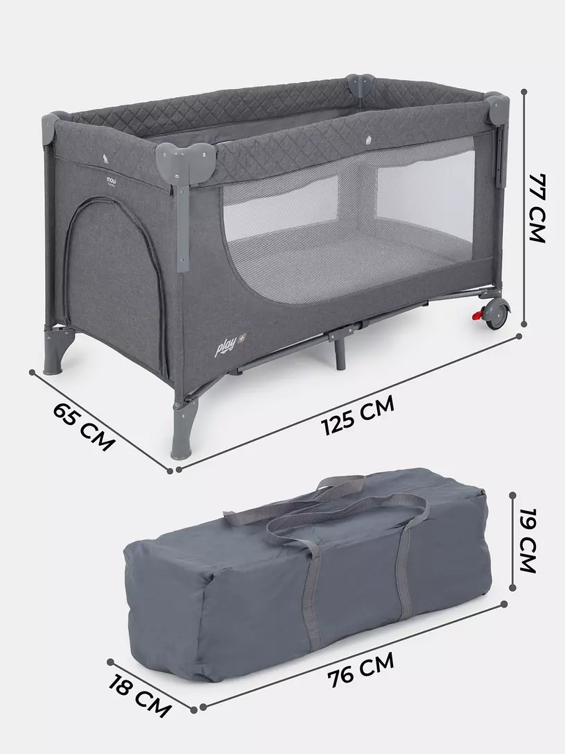 - это не просто манежик, но и полноценная кроватка для крохи. Поэтому смело используйте эту модель как дома, так и в любых поездках. Размер - 125x65x77