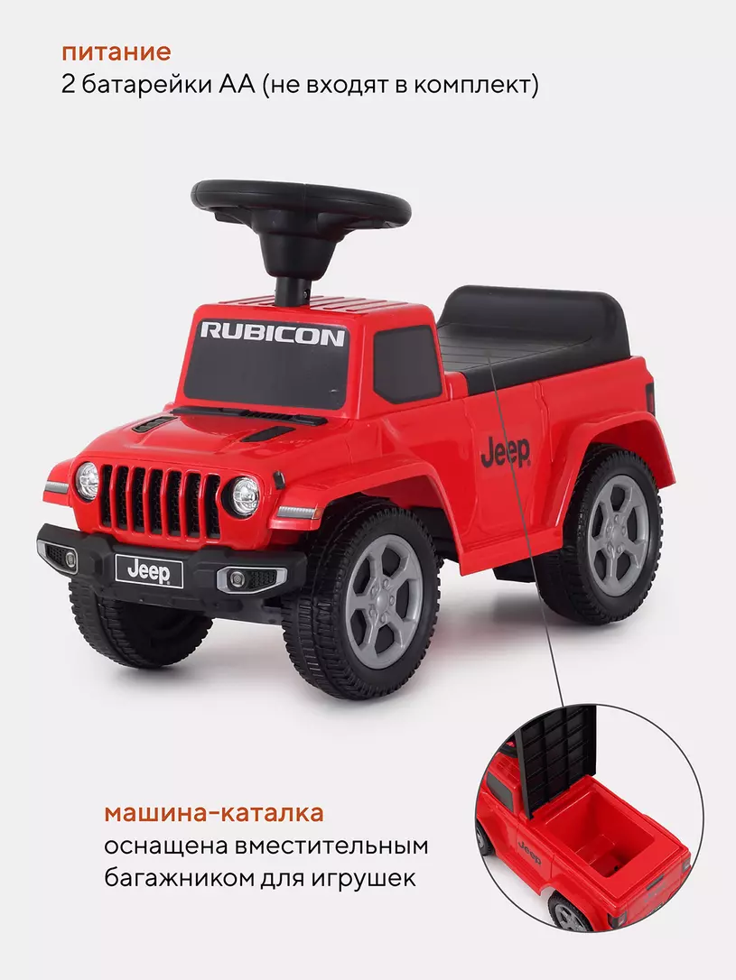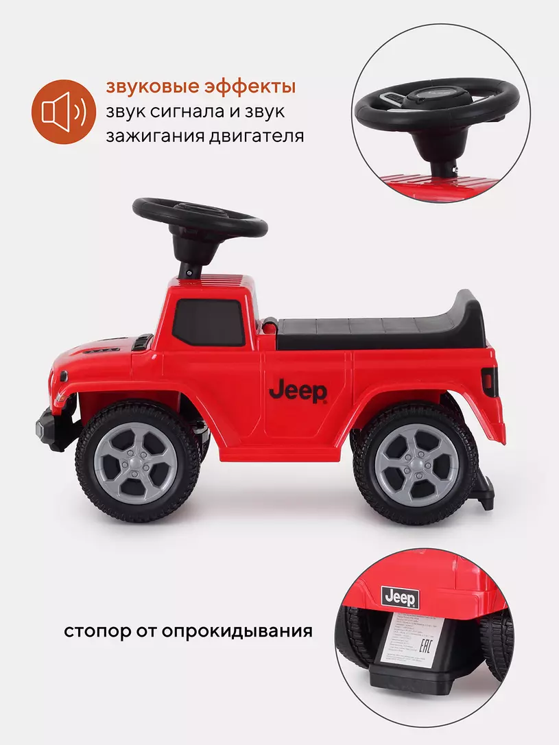 Брутальный дизайн и особые возможности толокара 664 JEEP GLADIATOR, в точности повторяющего модель ведущего автомобильного бренда, не оставят равнодушным вашего кроху. Поворотный руль, звуковые эффекты, защита от опрокидывания - позволят юному водителю чувствовать себя комфортно.