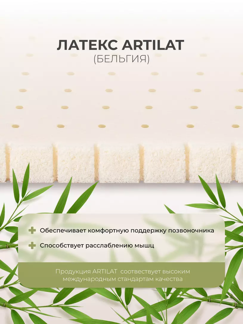 - 1 см - Латекс Artilat (производство Бельгия). Натуральный латекс, зарекомендовавшей себя европейской компании Artilat, обладает превосходными ортопедическими и анатомическими свойствами, что так важно для первых лет жизни крохи. Латекс Artilat экологичен, быстро восстанавливает форму и отлично пропускает воздух, а значит такой матрас «дышит» и не накапливает влагу. На “латексной” стороне матраса ребенку рекомендуется спать с 12 месяцев.