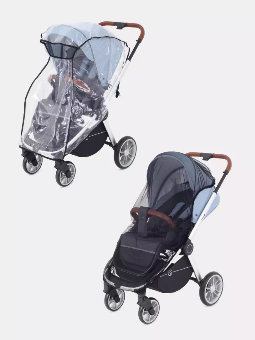 Универсальная москитная сетка и дождевик для прогулочной коляски надежно защитят малыша от нежелательных погодных факторов. Аксессуары надежно фиксируются на корпусе коляски.