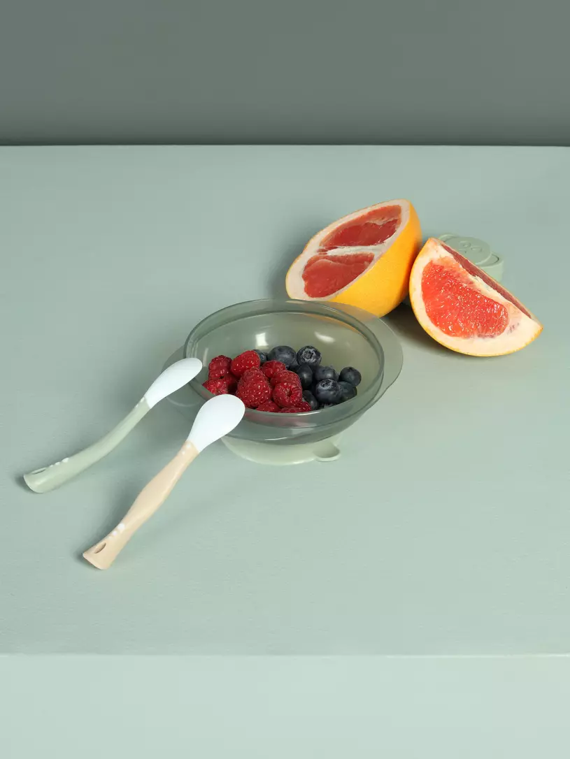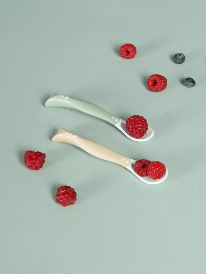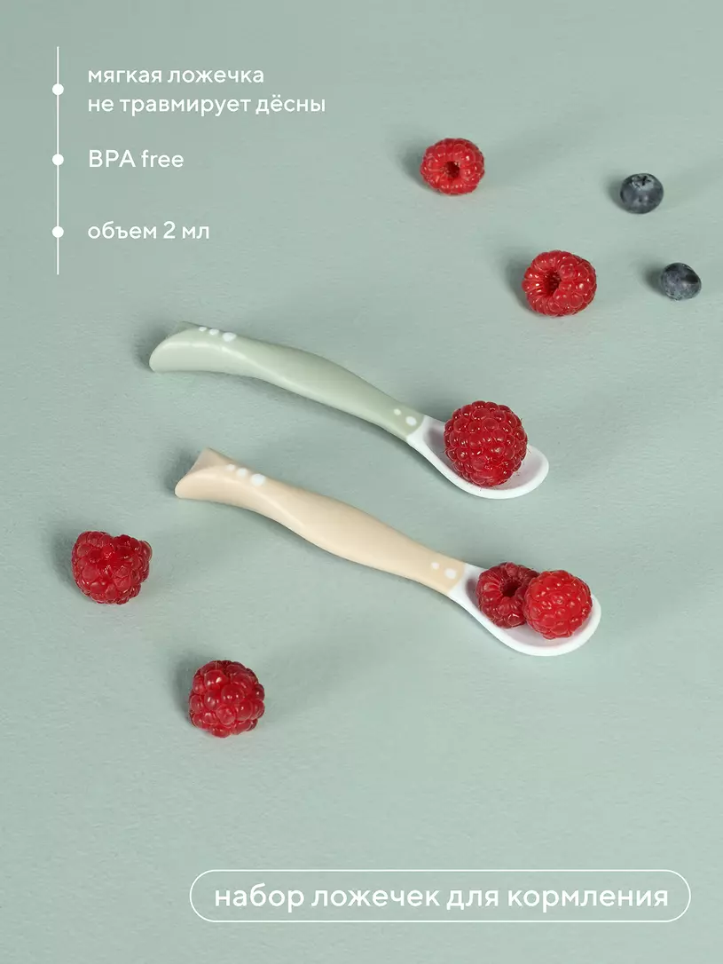 - ложечки, выполненные из мягкого пищевого силикона, не травмируют нежные десны, а объем (2 мл) отлично подойдет для первого знакомства с едой
