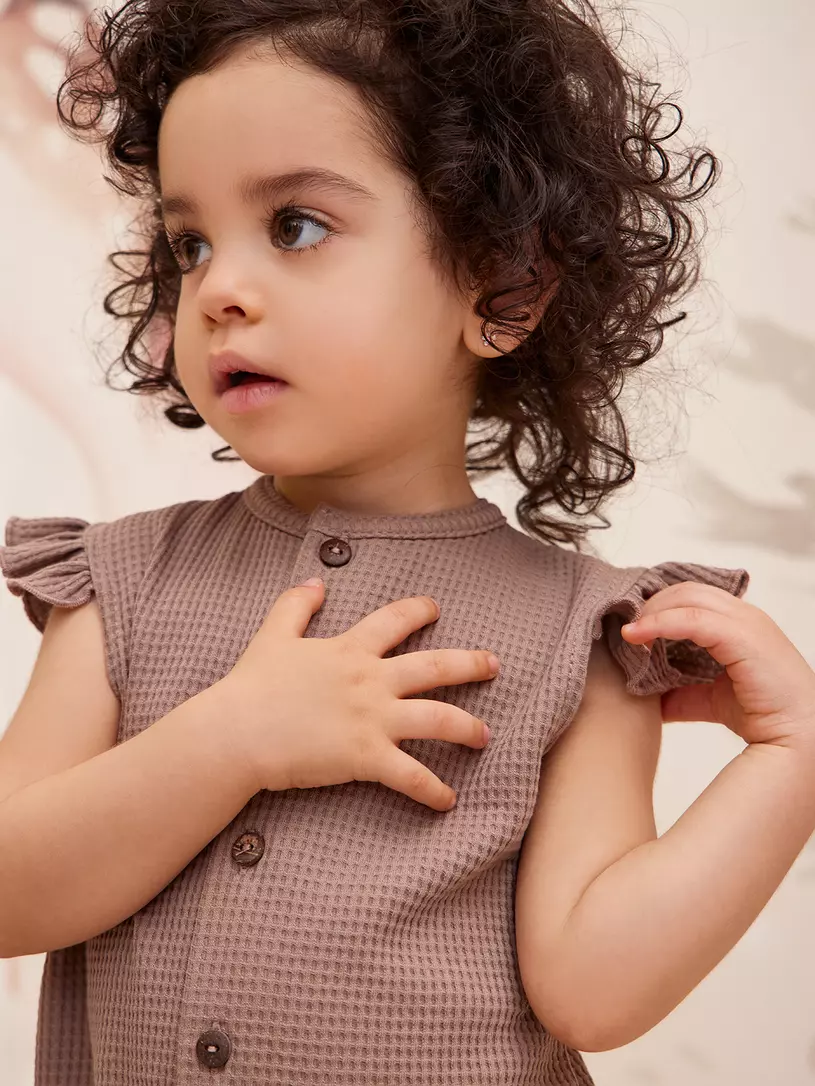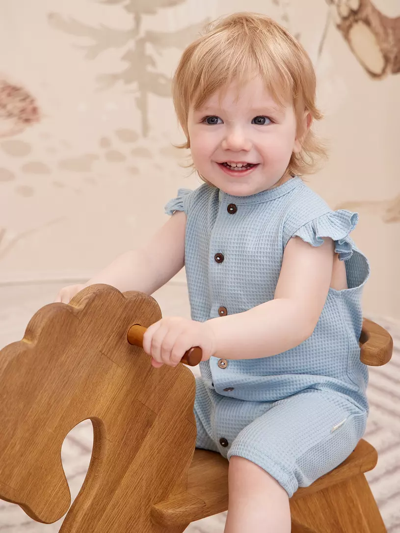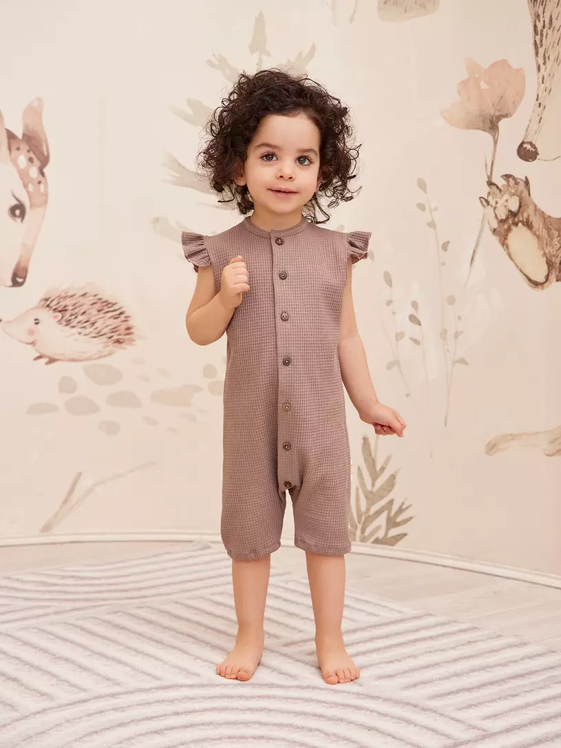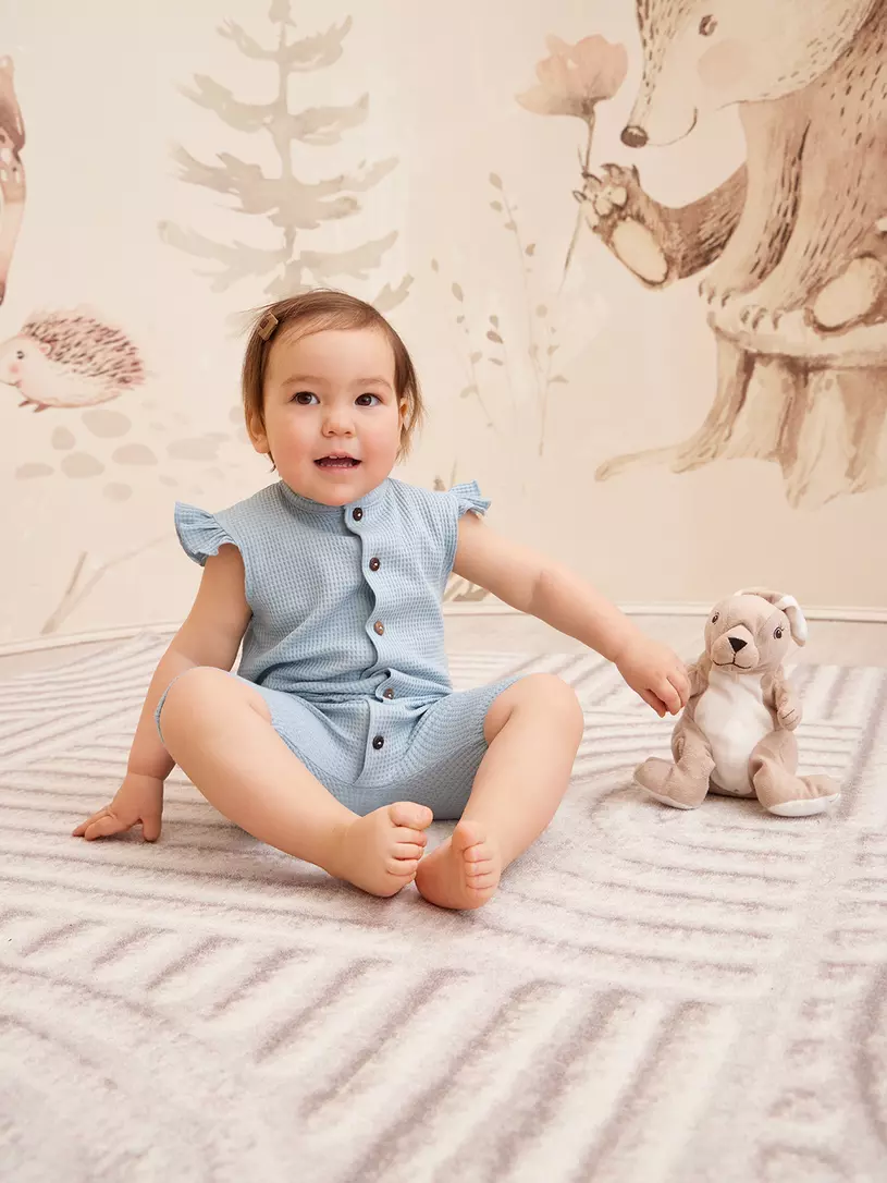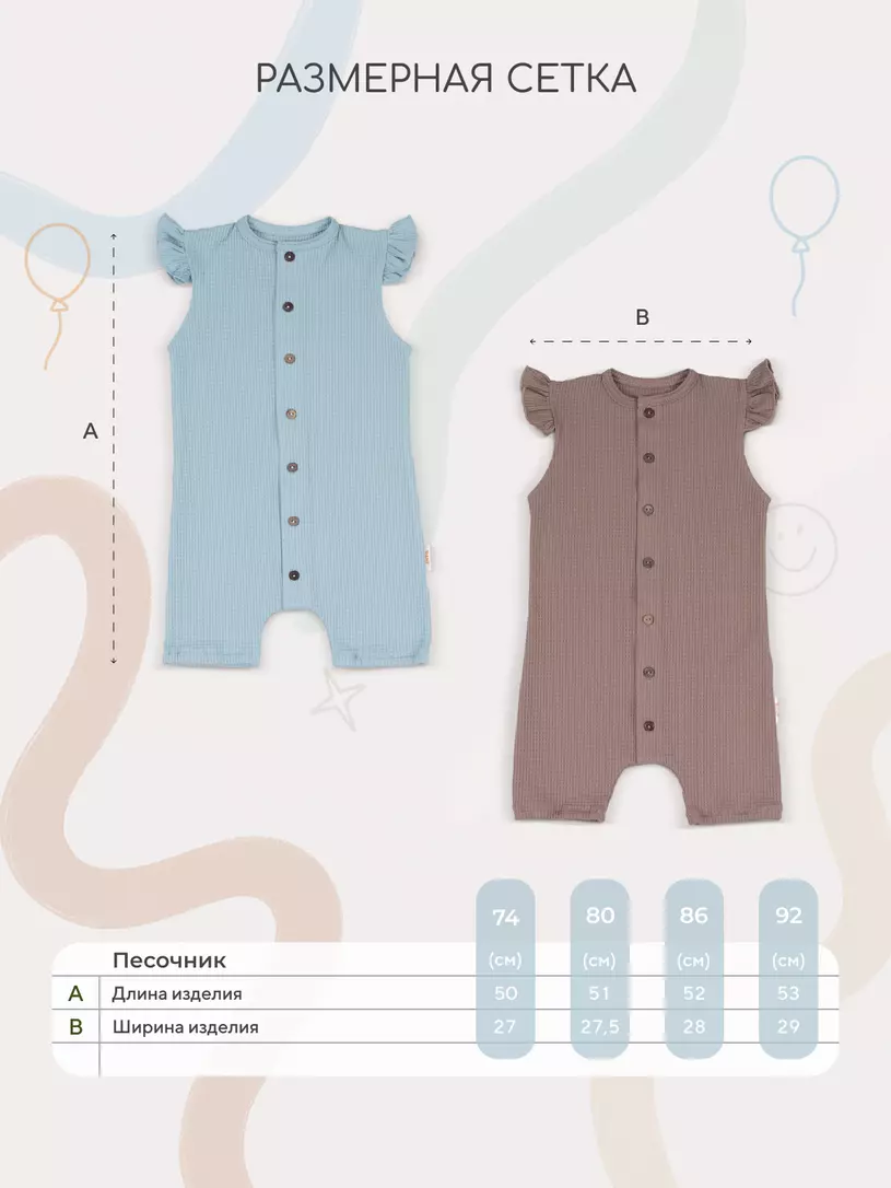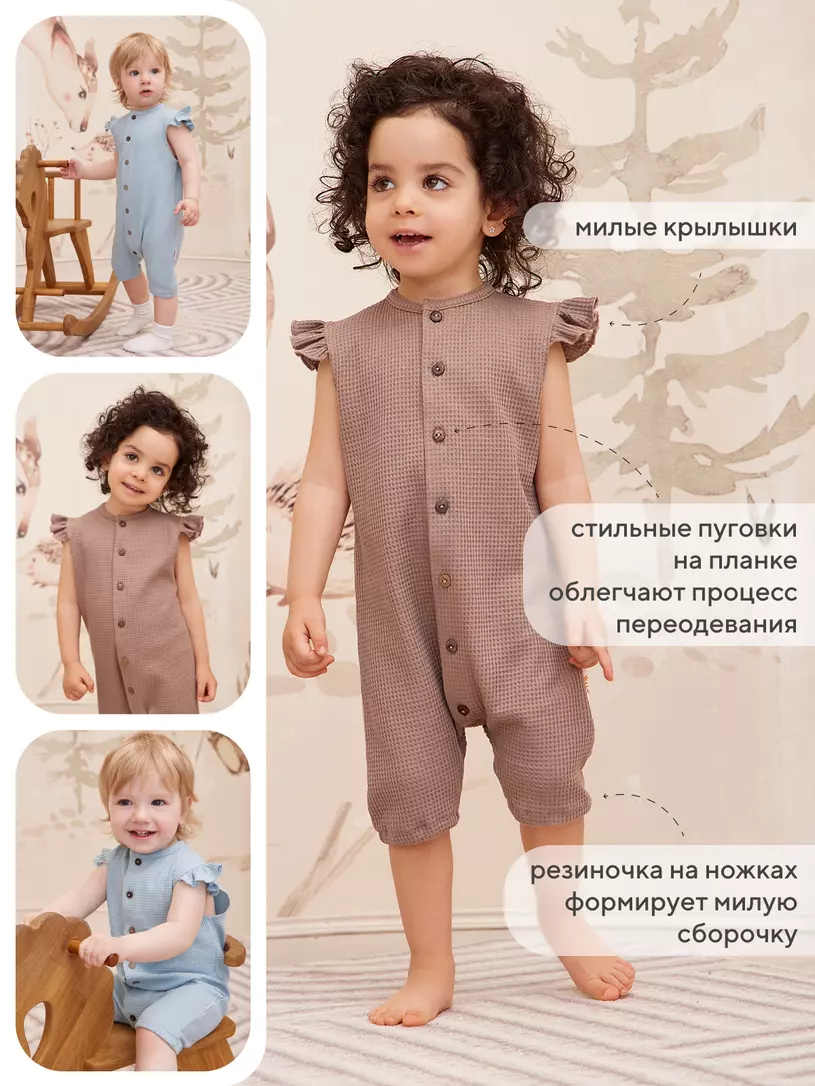 Эффектные ромперы подарят малышу отличное настроением даже в знойный день. Пуговицы по всей длине позволят с комфортом переодевать ребенка. А для маленьких модниц предусмотрены модели с очаровательными крылышками вместо рукавов. Песочники идеально подойдут для прогулок, путешествий и запоминающихся фотосессий.