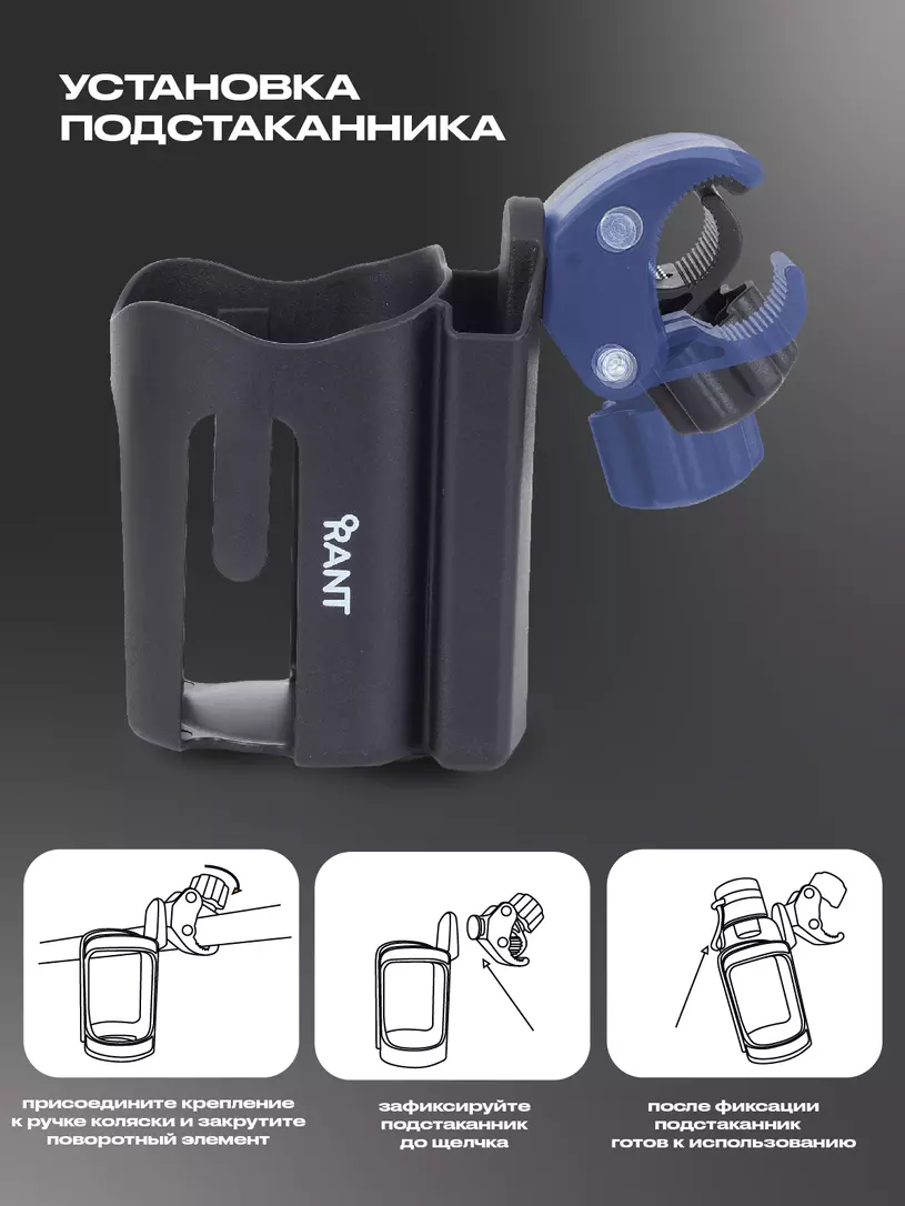 - подстаканник легко крепится с помощью винтового фиксатора к бамперу или ручке, не оставляя царапин