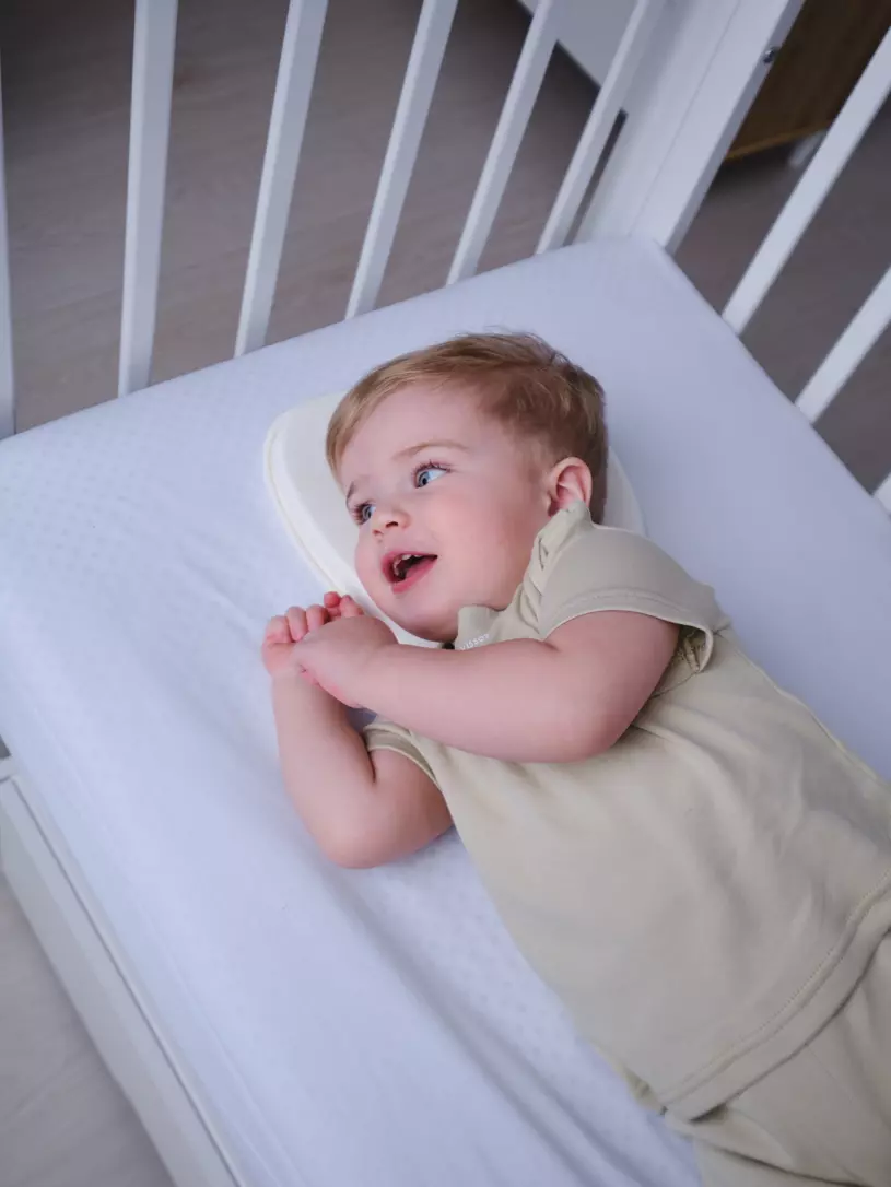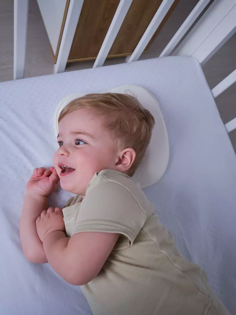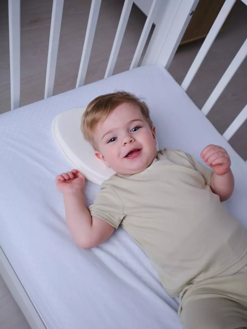 Анатомическая подушка Топотушки memory foam «запоминает» положение, в котором малышу наиболее комфортно, полностью расслабляет мышцы шеи, обеспечивая нормальное кровообращение и снижая мышечный тонус.
