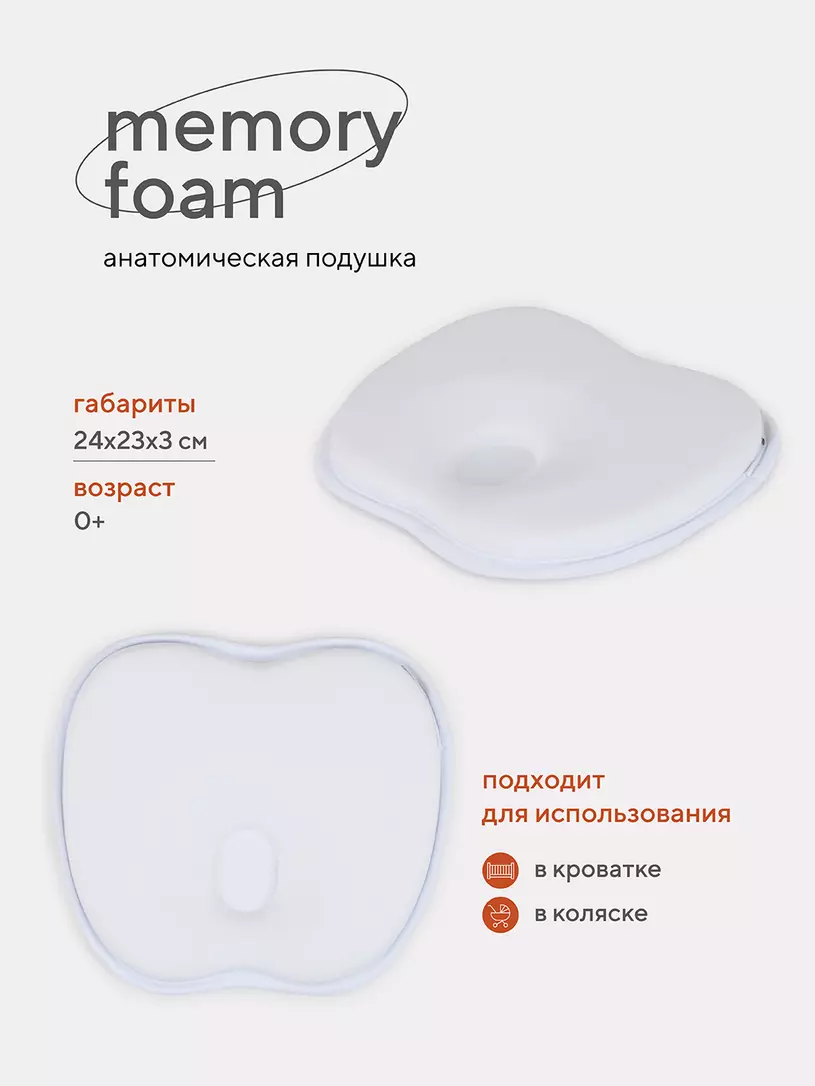 Анатомическая подушка Топотушки memory foam «запоминает» положение, в котором малышу наиболее комфортно, полностью расслабляет мышцы шеи, обеспечивая нормальное кровообращение и снижая мышечный тонус.