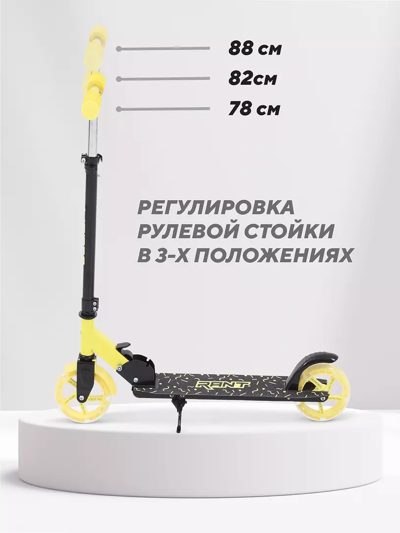 - рулевая телескопическая стойка удобно регулируется в 3 положениях - самокат за секунду подстроится под нужный рост (минимальная высота рулевой стойки 73 см, максимальная - 85 см)