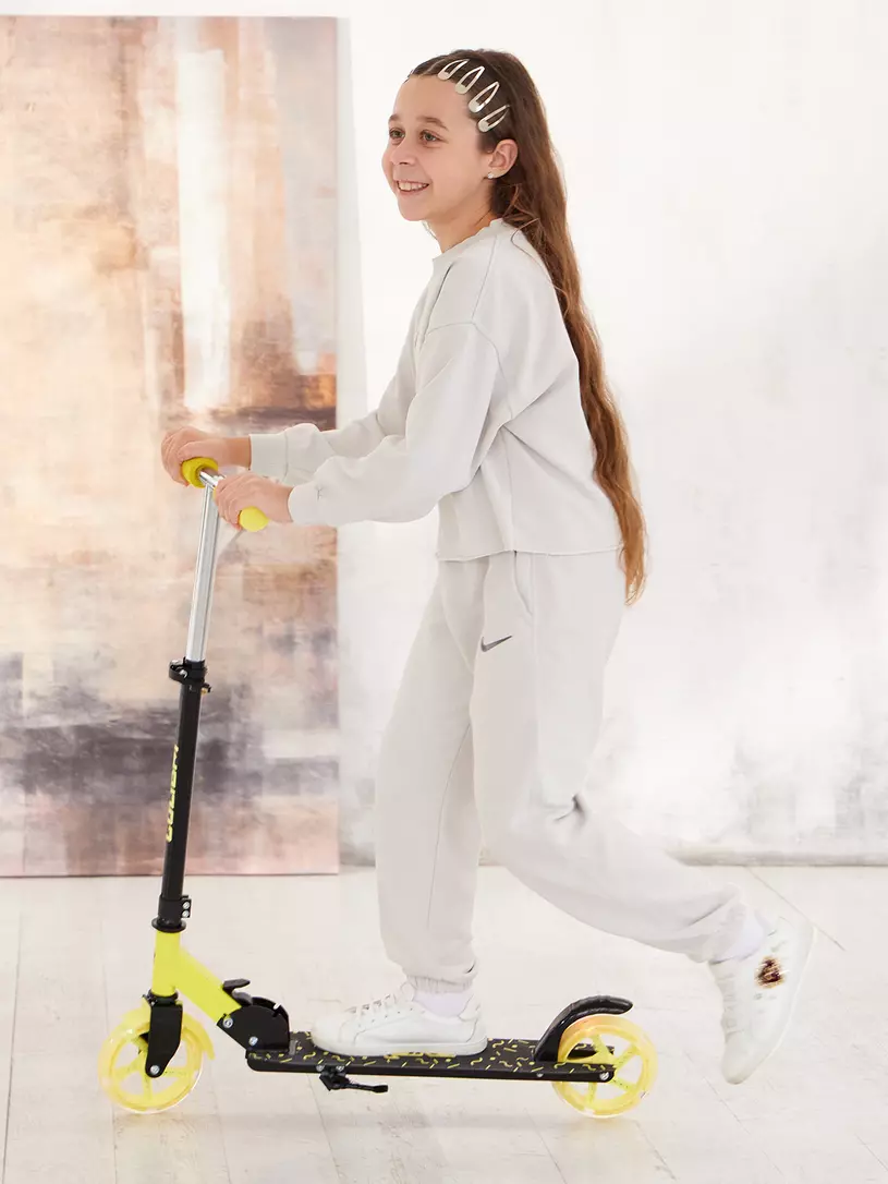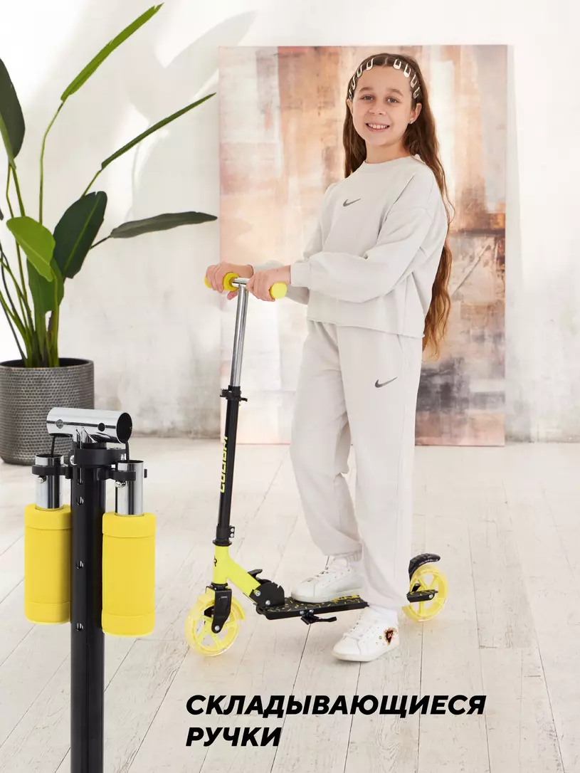 - рулевая стойка модели складывается, поэтому самокат максимально комфортно брать с собой в любое путешествие