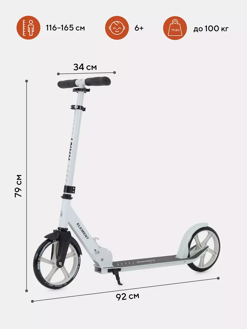 Самокат RANT ELEMENT обязательно станет надежным спутником вашего ребенка! Уникальность модели в его простой системе складывания (складывается не только стойка, но и ручки) и компактности в сложенном виде, а также в широком диапазоне применения (максимальная нагрузка - 100 кг).