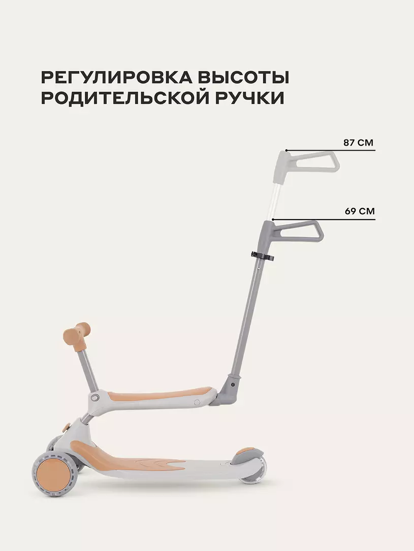 Стильный трансформер с телескопической ручкой поможет вашему малышу покорить все городские парки. Кстати, у него и колеса светятся.Комфорт для крохи: