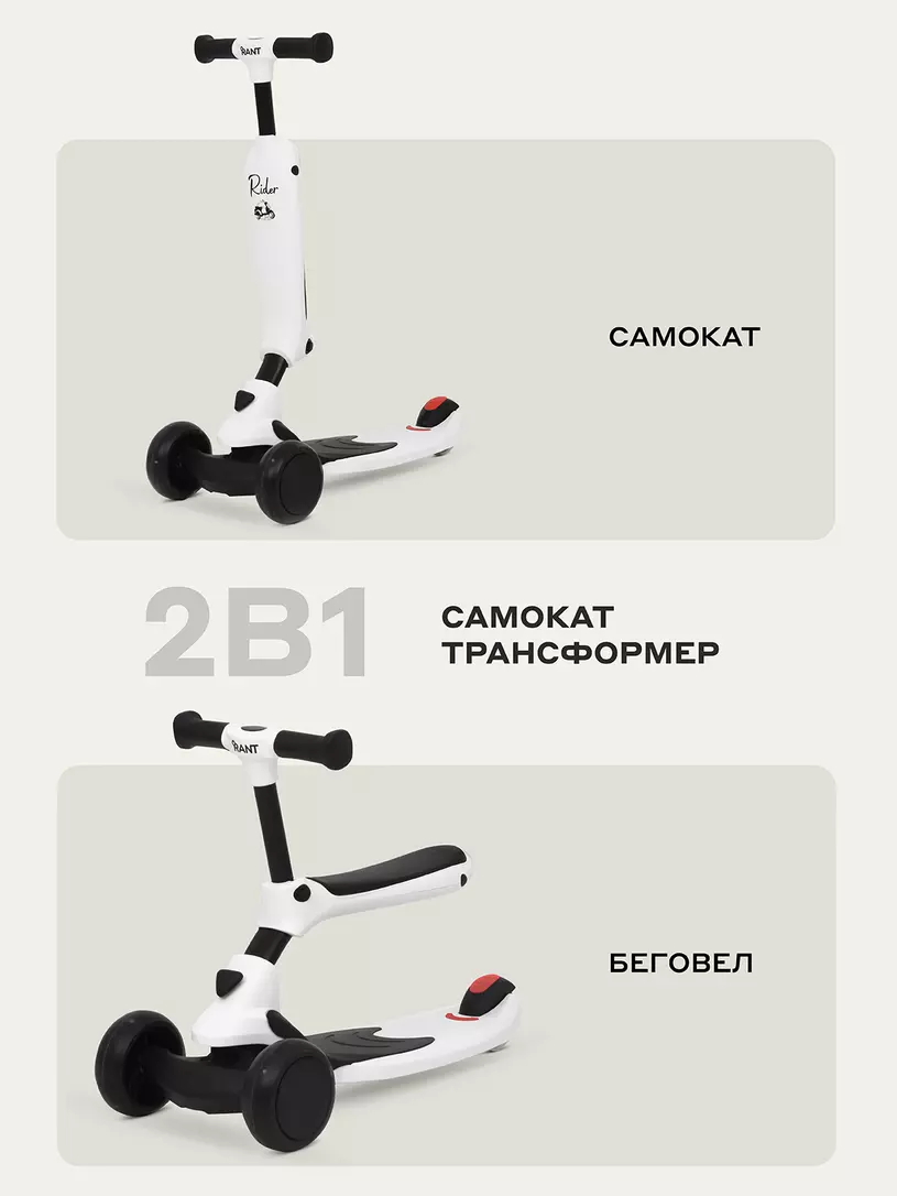 Футуристический дизайн детского беговела-трансформера RANT RIDER удивит и обрадует вашего малыша! А опция быстрой трансформации без инструментов (за 30 секунд) сделает приключения юного водителя еще увлекательнее.