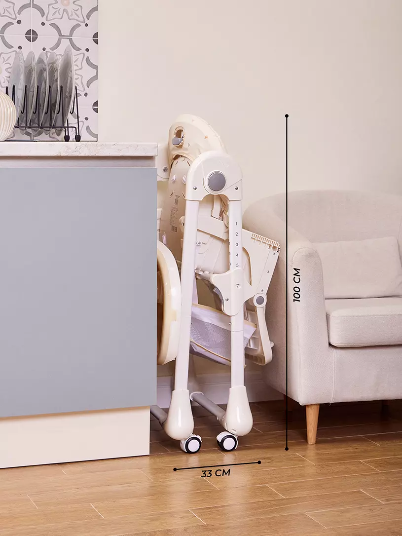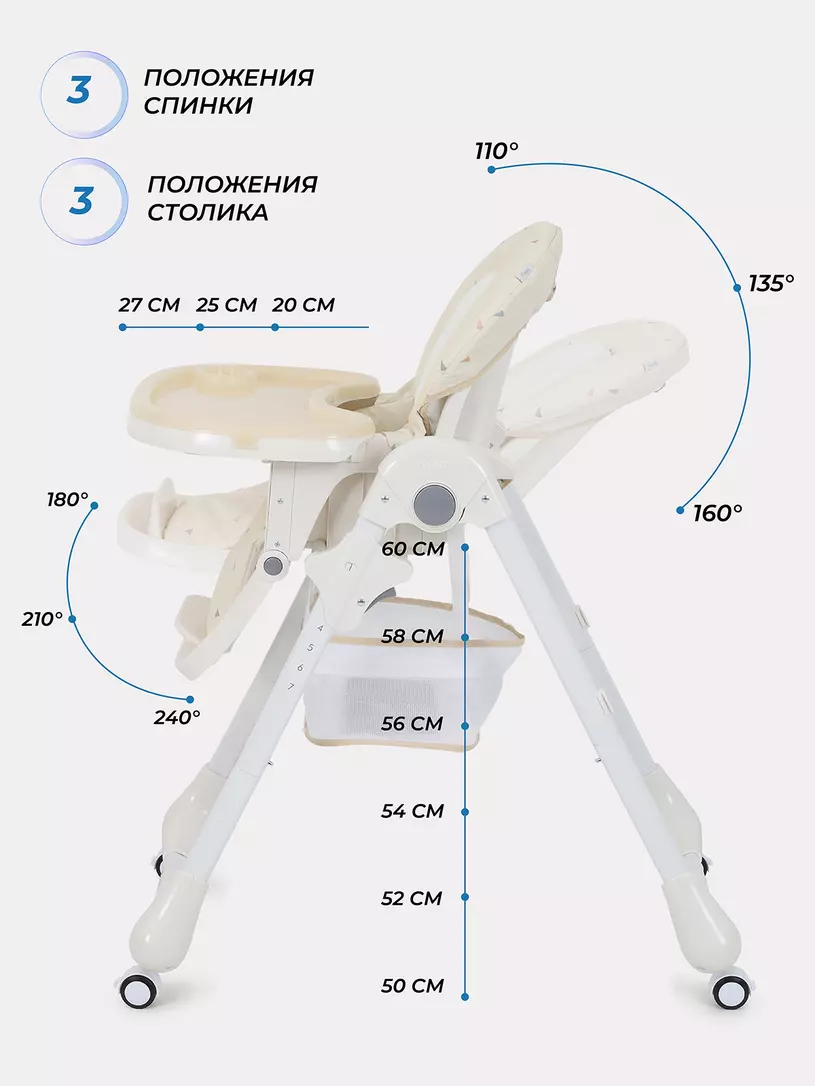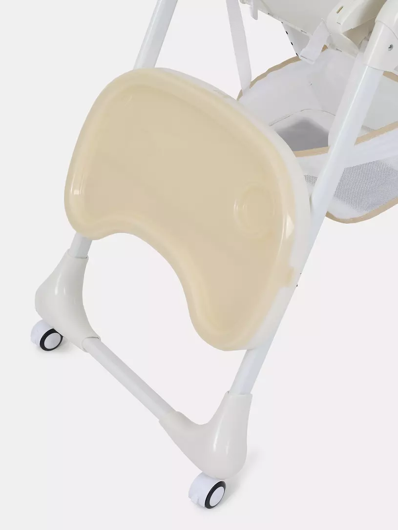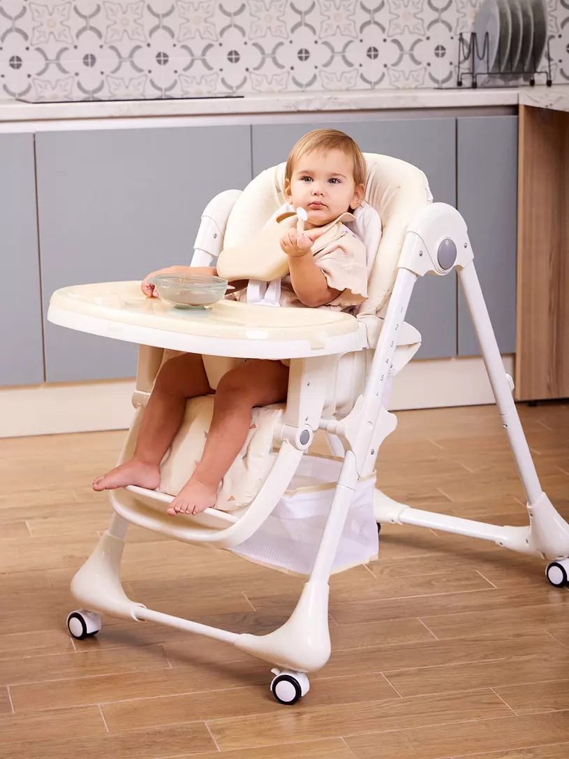 Детский стульчик для кормления RANT CREAM покорит вас: всеми необходимыми регулировками; двойной столешницей; возможностью зафиксировать столешницу на раме; колесиками со стопором; корзиной под сиденьем; компактным вертикальным хранением; мягким матрасиком-вкладышем; практичным чехлом из водоотталкивающего материала.