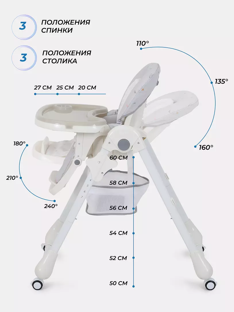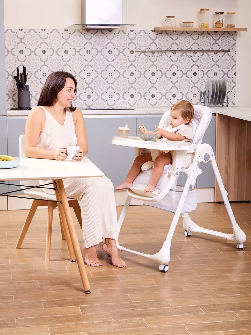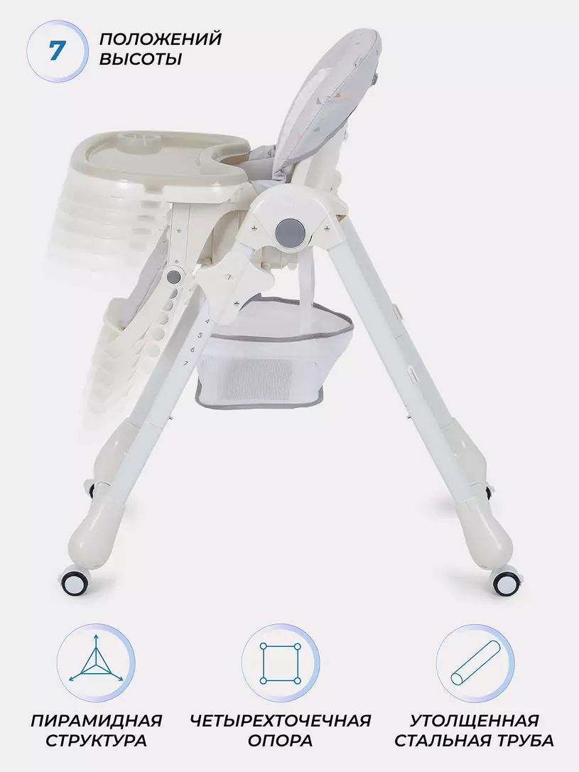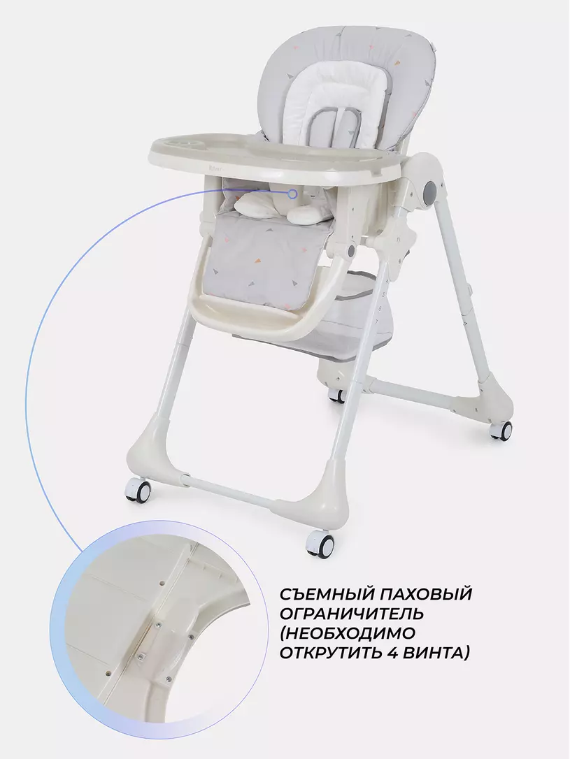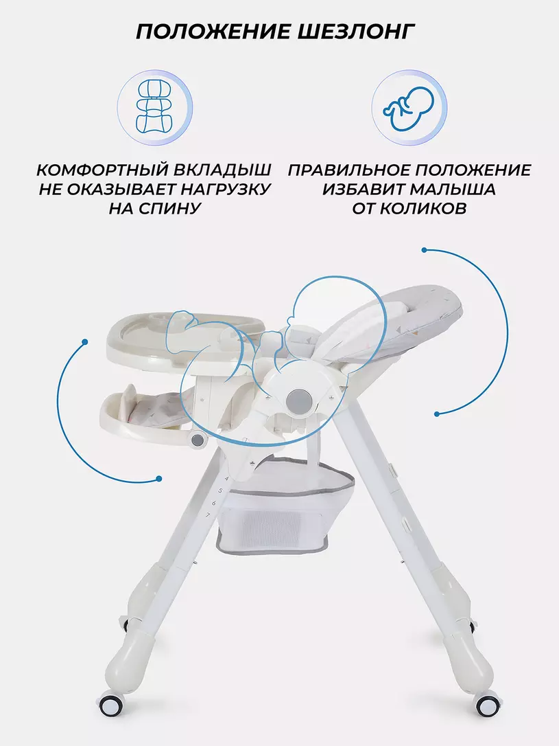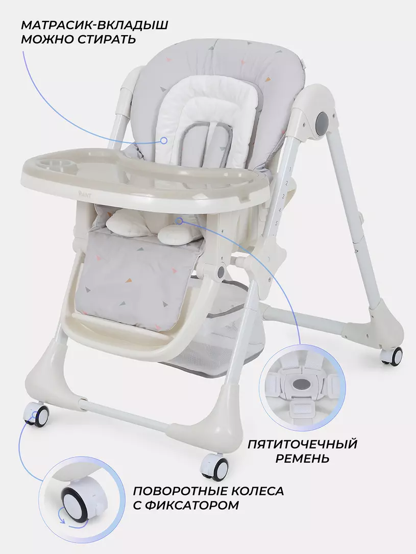 Детский стульчик для кормления RANT CREAM покорит вас: всеми необходимыми регулировками; двойной столешницей; возможностью зафиксировать столешницу на раме; колесиками со стопором; корзиной под сиденьем; компактным вертикальным хранением; мягким матрасиком-вкладышем; практичным чехлом из водоотталкивающего материала.