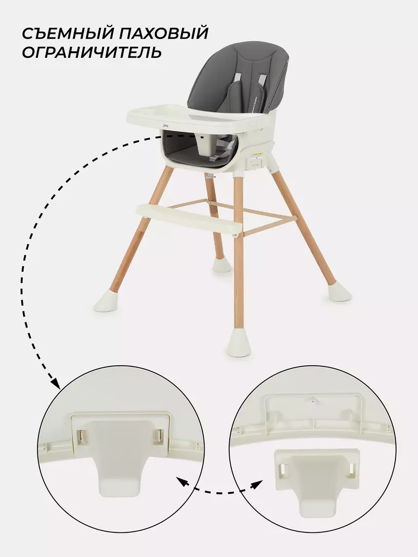 Детский стульчик-трансформер для кормления 3 в 1 RANT JUICY WOOD покорит вас: возможностью трансформации из классического стульчика в стульчик с укороченными ножками и в табурет; важным набором регулировок; двойной столешницей; антицарапающим покрытием ножек; чехлом из практичной и роскошной экокожи.