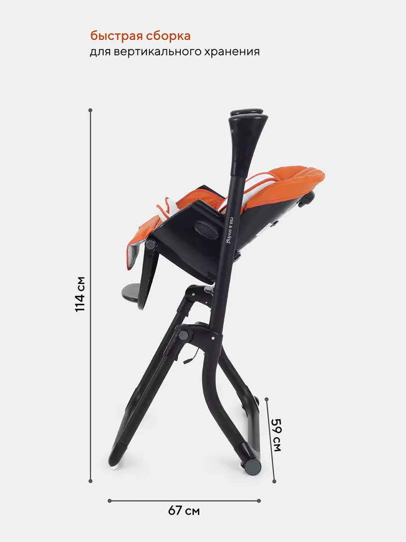 - все регулировки стандартного стульчика для кормления: 5 уровней регулировки по высоте, 4 положения спинки, 4 положения подставки для ног.