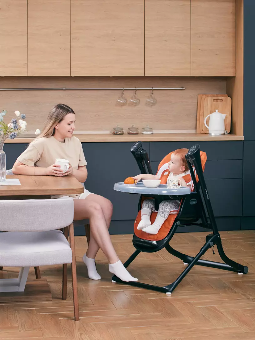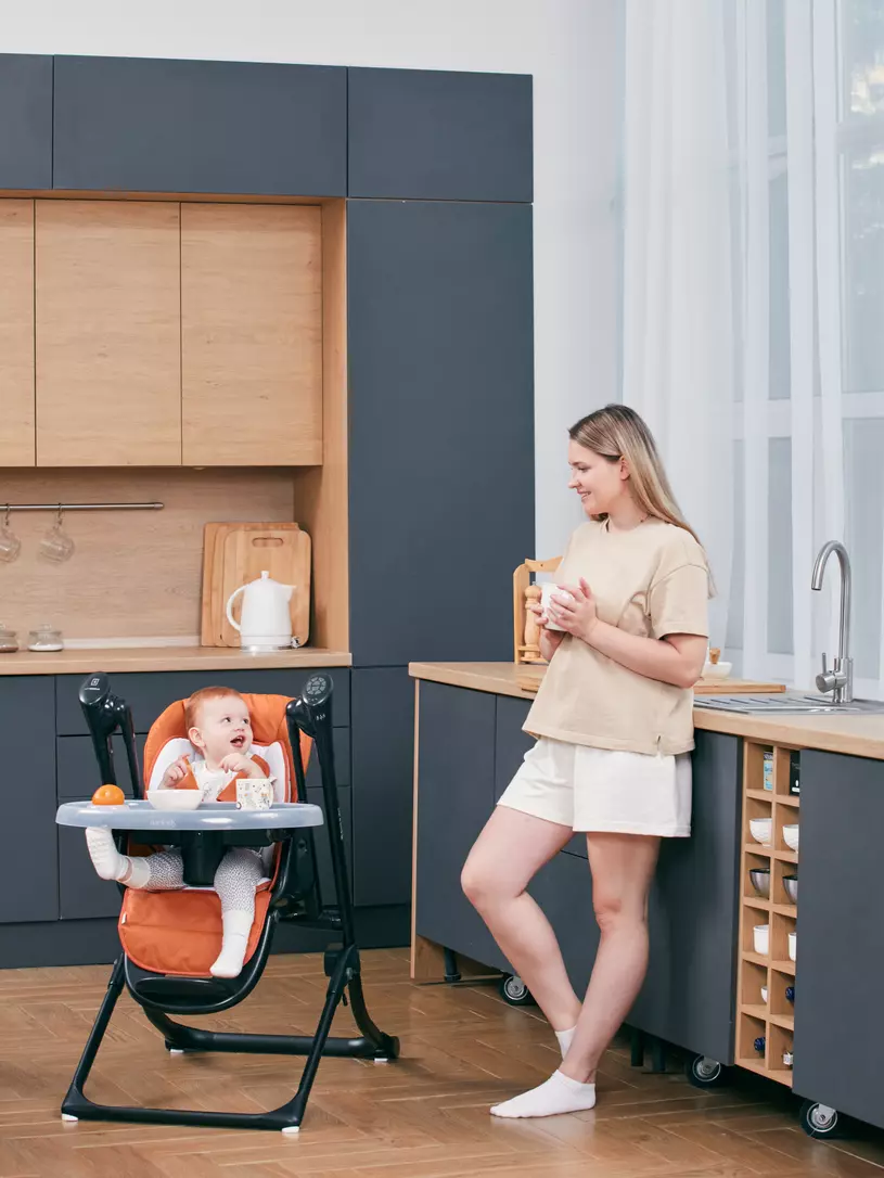 - когда вы решите начать прикорм, вам понадобится столешница. В этой модели ее можно снять, чтобы придвинуть малыша к общему столу.