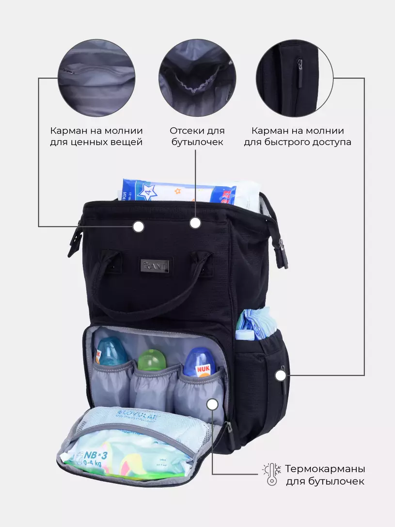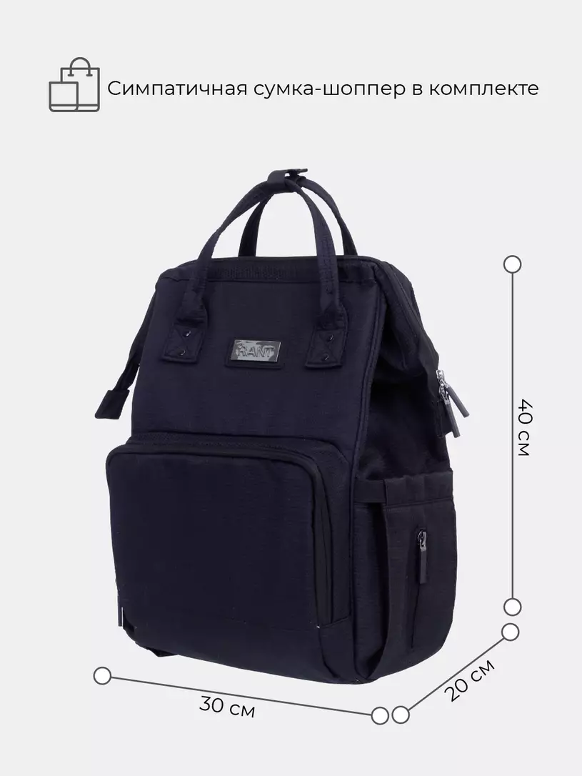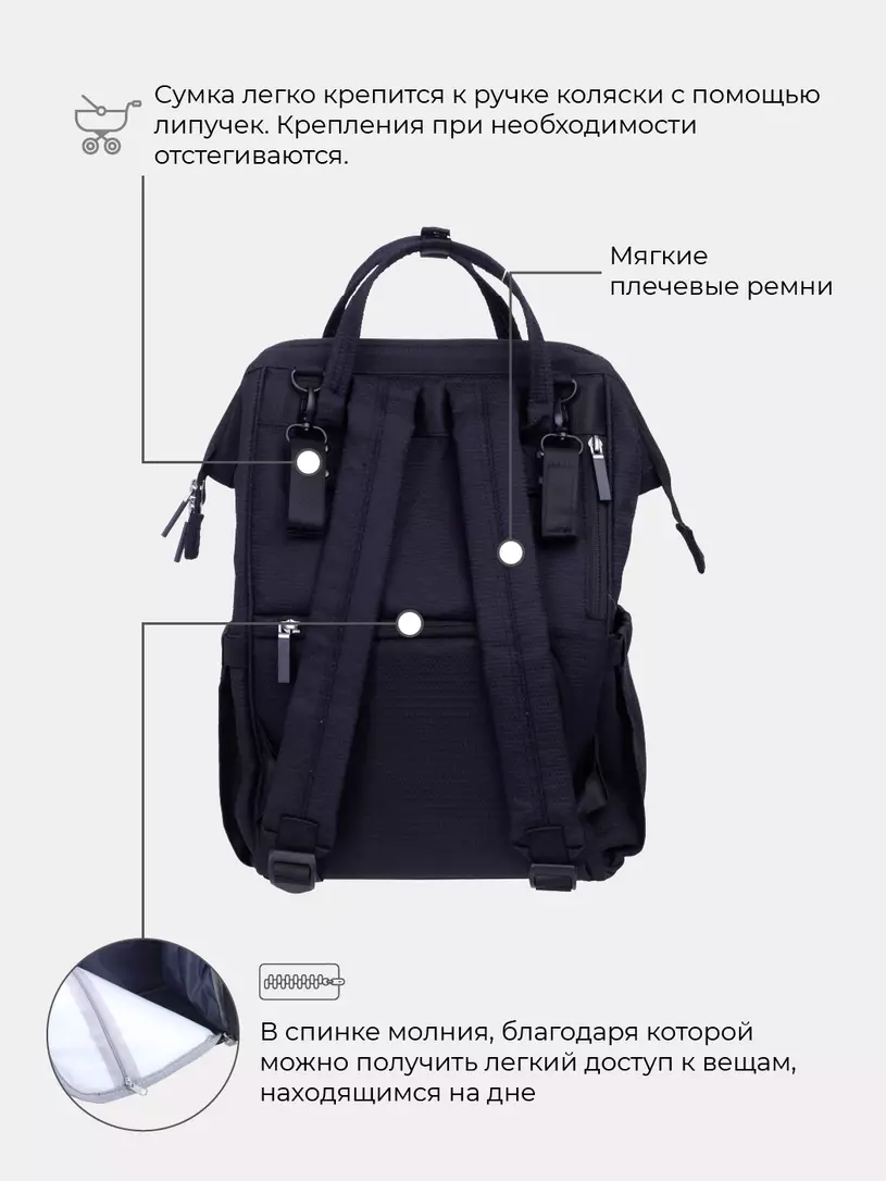 Продуманная сумка-рюкзак для мамы + шоппер, выполненная в традиционном динамичном стиле, вместит в себя все необходимые вещи для прогулки, путешествия или поездки на дачу. Строгие расцветки оценят ценители прекрасного.