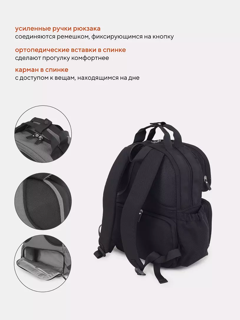 - удлиненные и усиленные ручки рюкзака соединяются ремешком, фиксирующимся на кнопку