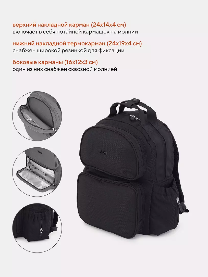 - нижний накладной термокарман полностью фольгирован (для поддержания нужной температуры еды и напитков) и снабжен широкой резинкой для фиксации разноформатных емкостей