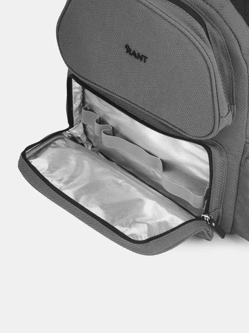 - нижний накладной термокарман полностью фольгирован (для поддержания нужной температуры еды и напитков) и снабжен широкой резинкой для фиксации разноформатных емкостей