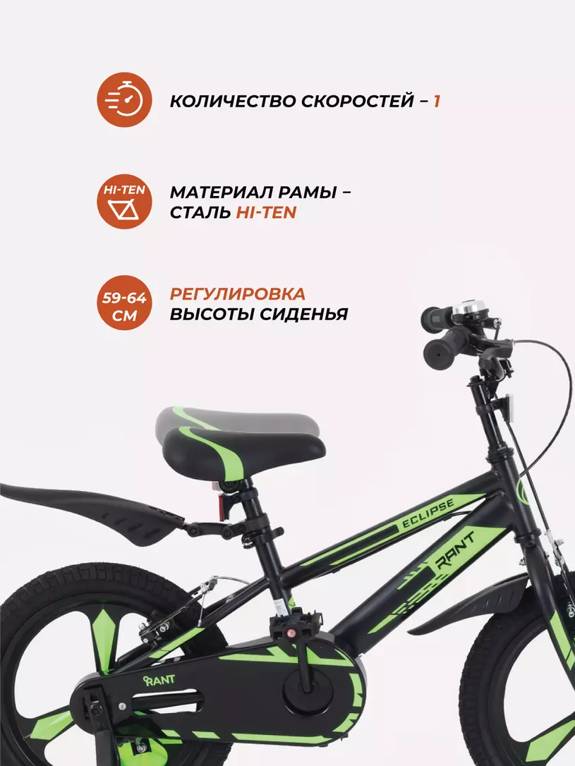Эффектный динамичный дизайн детского двухколесного велосипеда RANT ECLIPSE непременно оценит каждый ребенок! Также комфорта и уверенности юному исследователю добавят: необычные литые колеса, анатомическое сиденье, инновационные материалы и детали.