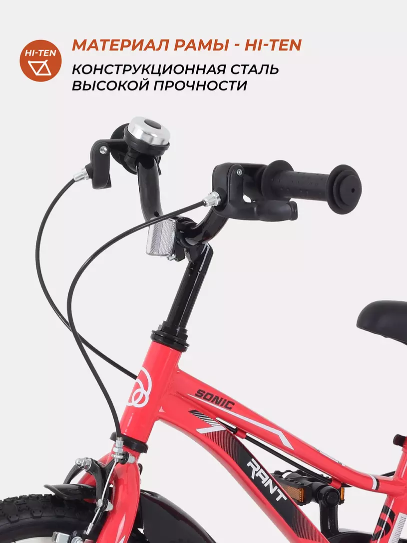 Энергичный дизайн детского двухколесного велосипеда RANT SONIC непременно оценит юный райдер! Также комфорта и уверенности исследователю добавят: специальное обновление для большей безопасности - дополнительный ножной тормоз, светящиеся боковые колеса, кисточки на руле (белая и мятная модели), множество светоотражателей.