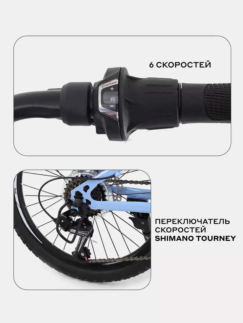 - шифтер Shimano Tourney - один из самых надежных переключателей скоростей - включает 6 скоростей в данной модели