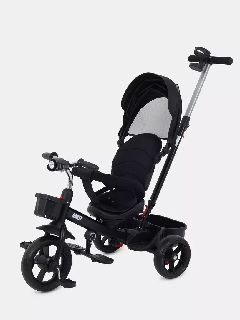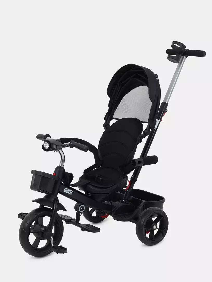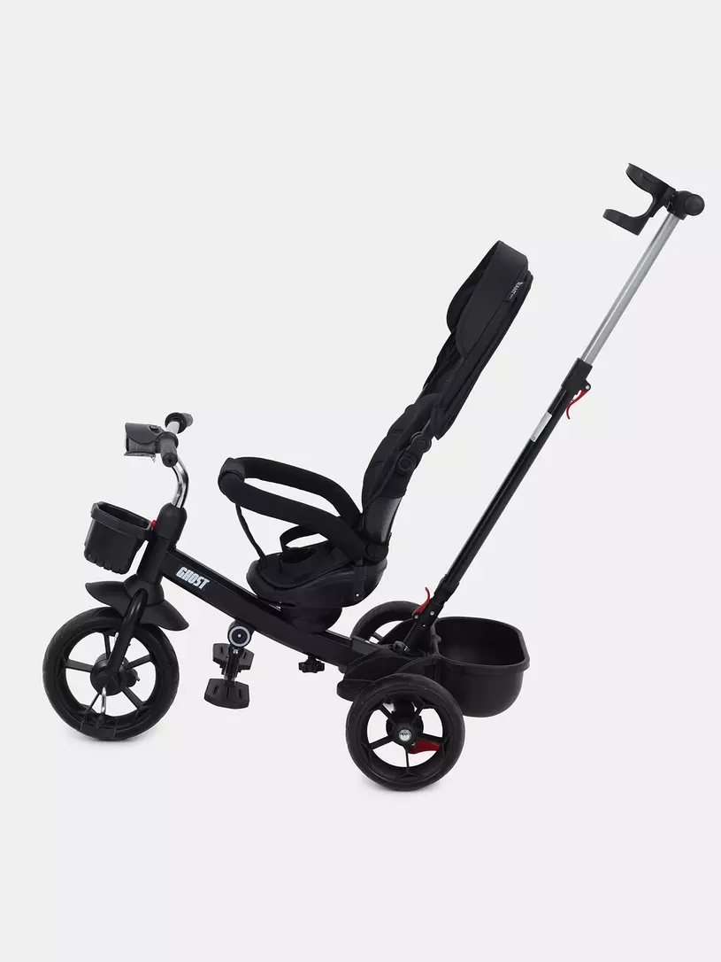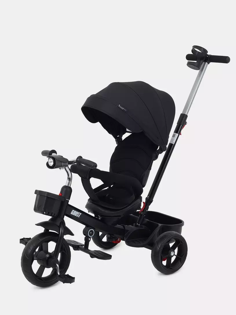 Детский велосипед с ручкой RANT BASIC GHOST обязательно понравится юному любителю приключений! А реверсивное сиденье, 2-точечные ремни, складная подножка, блокировка педалей и съемные детали (капор, бампер, ручка) помогут исследовать городские парки с большим комфортом.