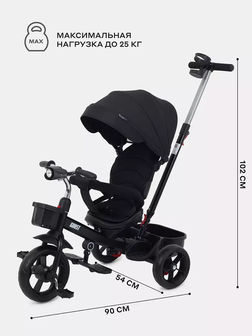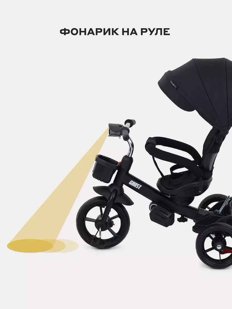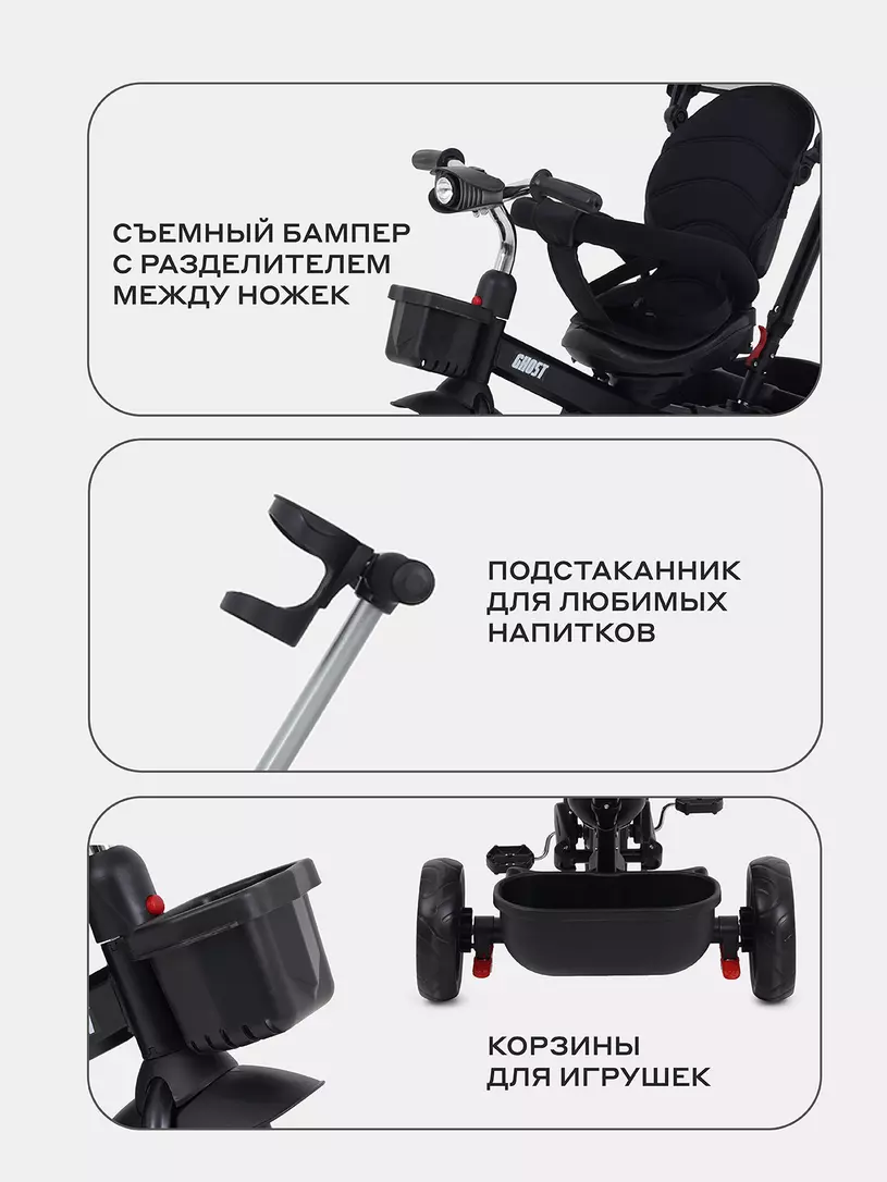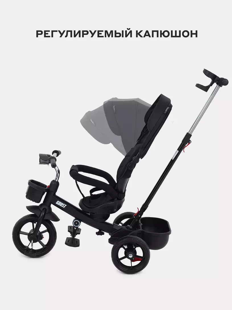 Детский велосипед с ручкой RANT BASIC GHOST обязательно понравится юному любителю приключений! А реверсивное сиденье, 2-точечные ремни, складная подножка, блокировка педалей и съемные детали (капор, бампер, ручка) помогут исследовать городские парки с большим комфортом.