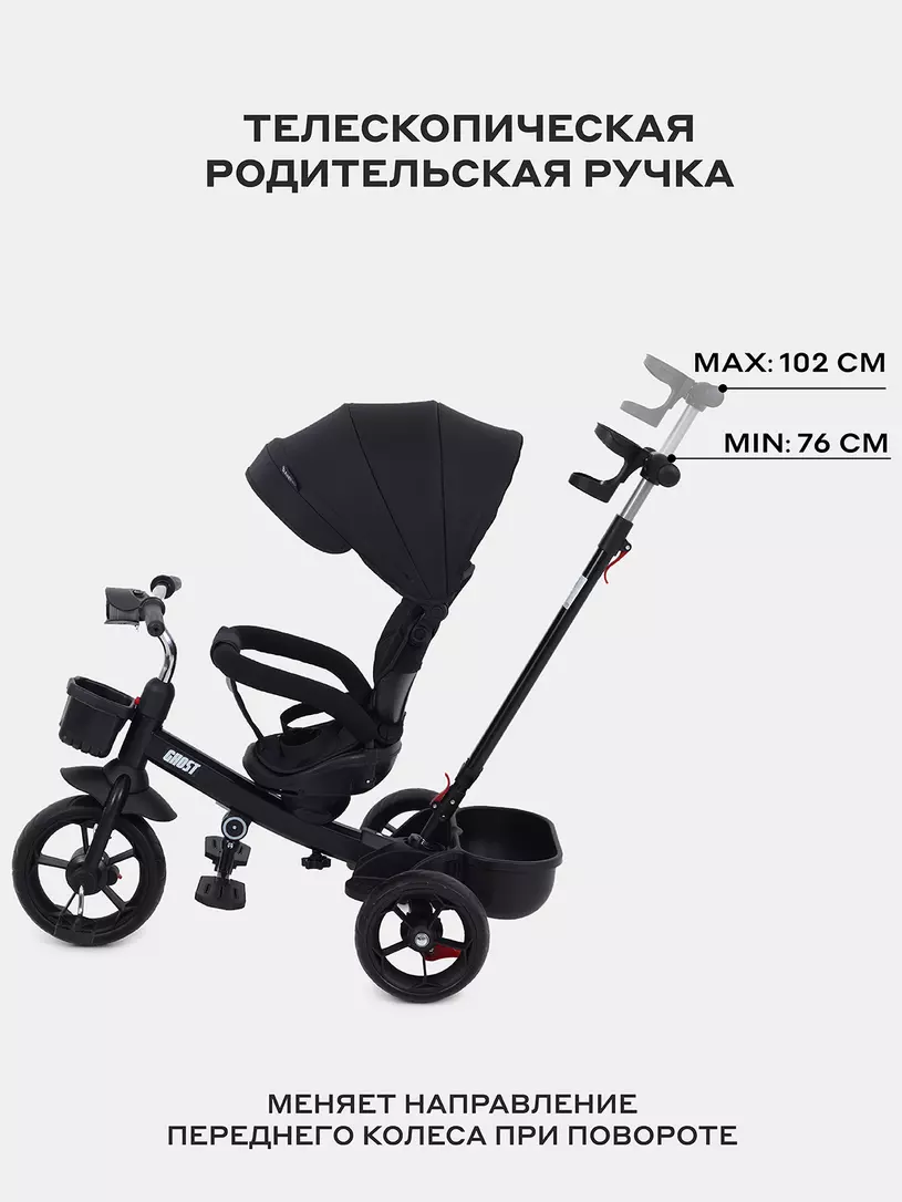 - с помощью регулируемой телескопической ручки вы сможете управлять транспортным средством, пока малыш не справляется с управлением